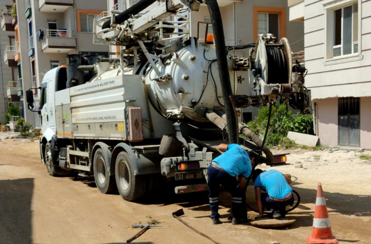 Hatay Büyükşehir Belediyesi Su ve Kanalizasyon İdaresi Genel Müdürlüğü (HATSU), atık su hatlarında oluşan tıkanma problemini çözme adına temizlik çalışmalarını sürdürüyor.