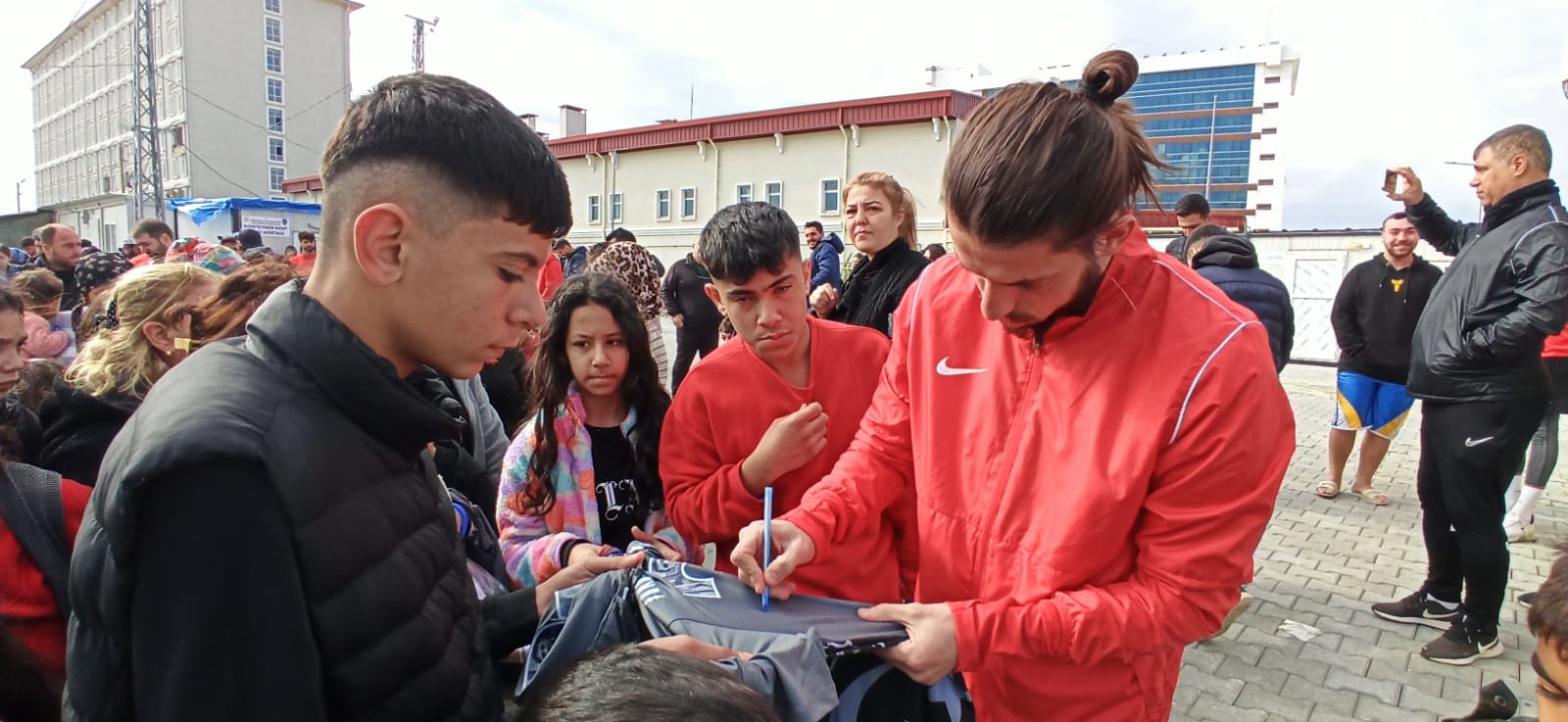 İskenderun spor takım kaptanı Onur Ural, konuk ekip AMED’li futbolculala birlikte depremzedeleri ziyaret etmek için burada olduklarını belirterek; “Acılarına ortak olmak, onları mutlu etmek için burayız” dedi.