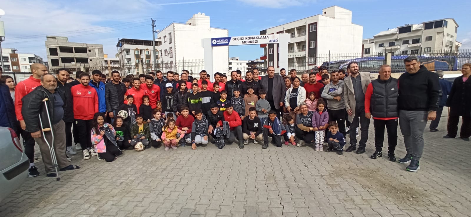 İkinci lig kırmızı grupta Pazar günü Kırıkhan’da karşılaşacak lig maçı için Hatay’da bulunan AMED Sportif Faaliyetler Kulübü teknik heyet ve sporcular, Turuncu-mavili takımla birlikte İskenderun Teknik Üniversitesi yerleşkesinde bulunan Atakaş konteyner kentte kalan depremzedeleri ziyaret etti. Her iki takımın sporcuları bir daha böyle acıların yaşanmaması dileğinde bulunarak çocuklara forma hediye etti, onlarla zaman geçidiler.