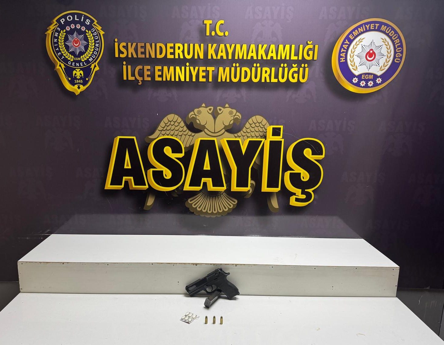 Şahsın ikametinde yapılan aramada ise 1 adet ruhsatsız tabanca, 1 adet şarjör, 3 adet 9.19 mm fişek ve 6 adet uyuşturucu hap ele geçirildi.