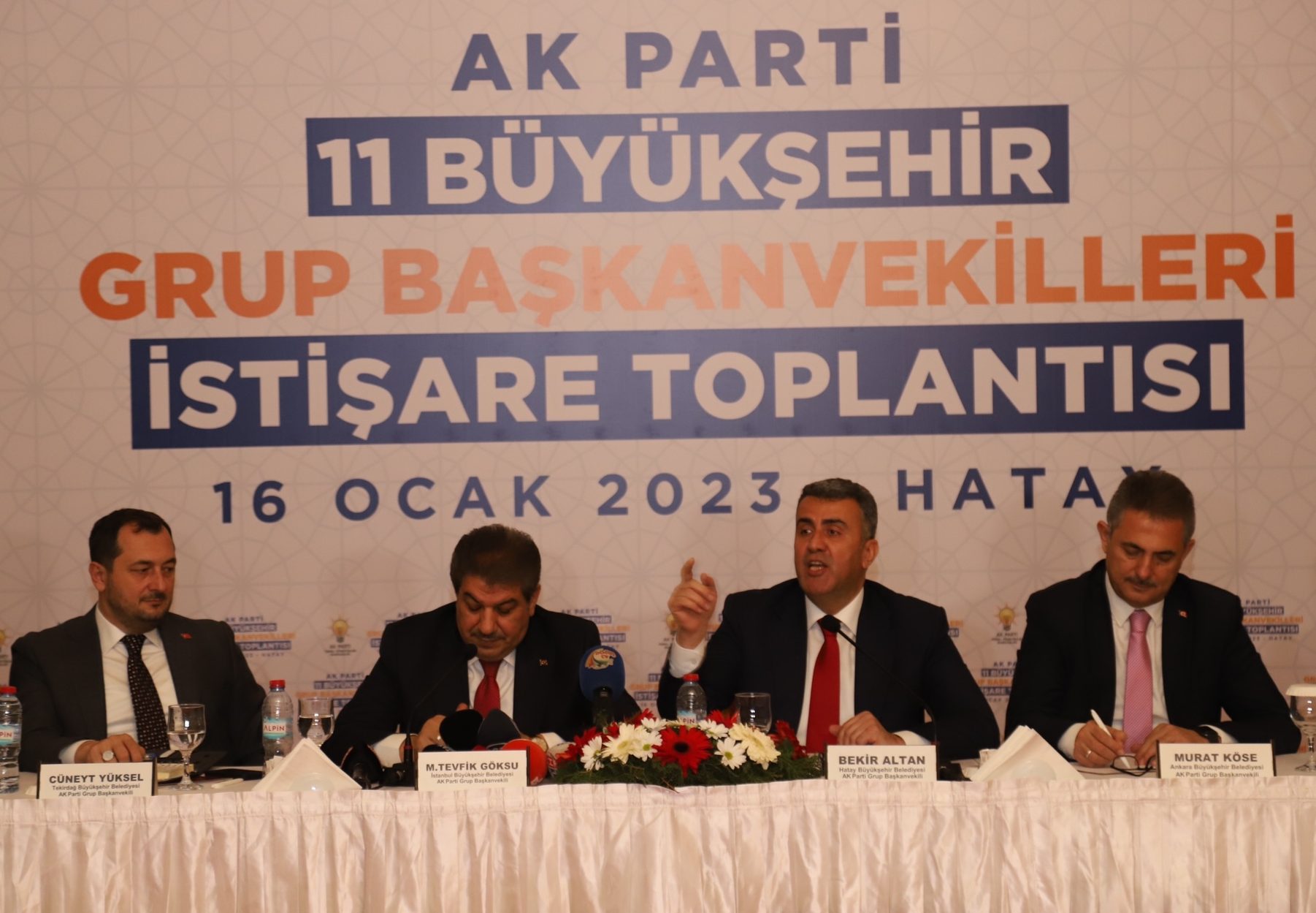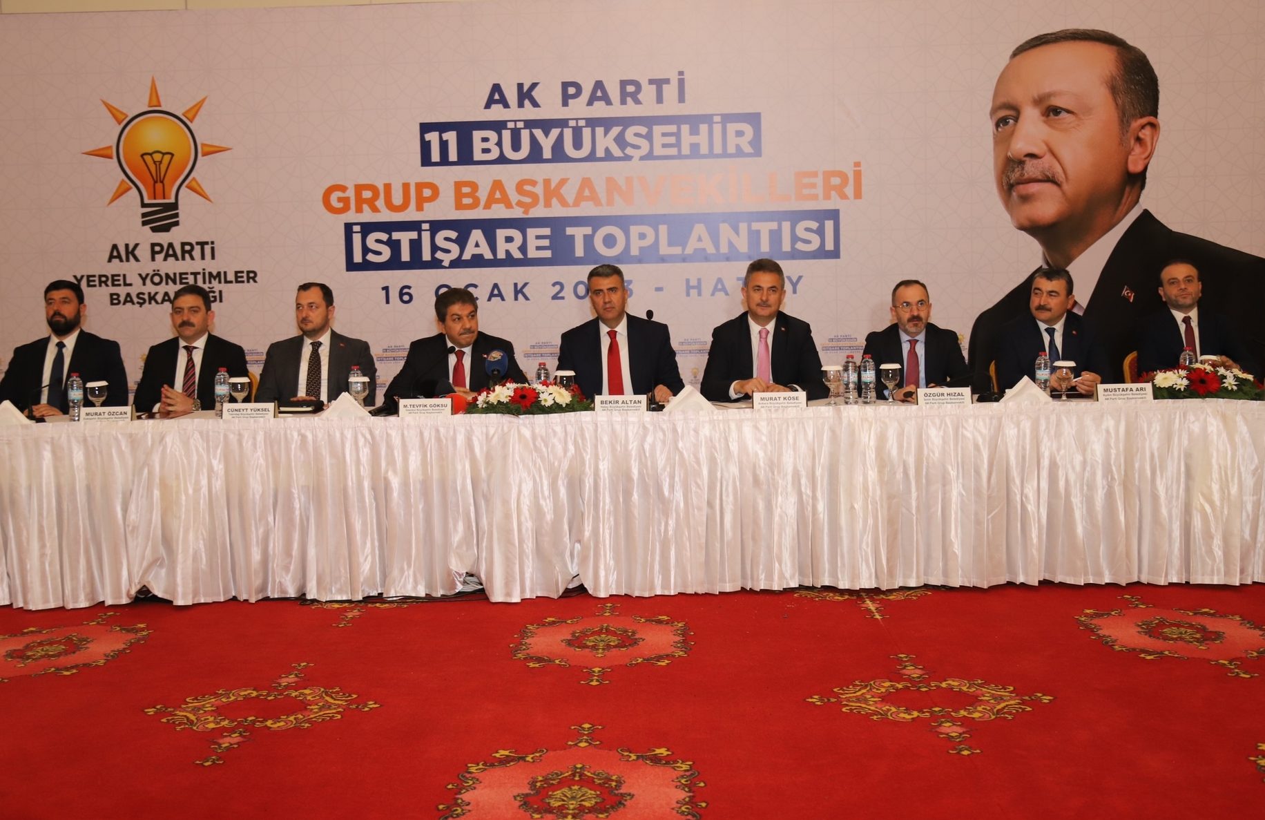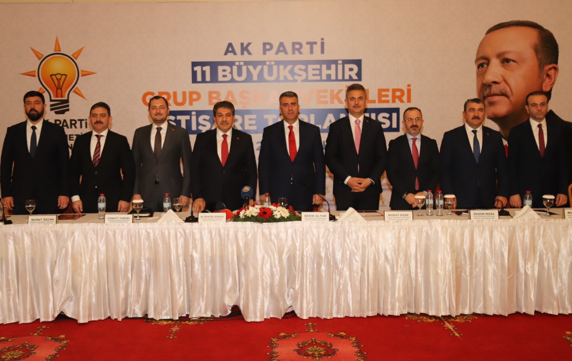 Hatay Büyükşehir Belediyesi Ak Parti Grup Başkanvekili Bekir Altan, İstanbul Büyükşehir Belediyesi Ak Parti Grup Başkanvekili M.Tevfik Göksu, Ankara Büyükşehir Belediyesi Ak Parti Grup Başkanvekili Murat Köse, Adana Büyükşehir Belediyesi Ak Parti Grup Başkanvekili Ozan Gülaçtı, Antalya Büyükşehir Belediyesi Ak Parti Grup Başkanvekili Ali Çetin, Aydın Büyükşehir Belediyesi Ak Parti Grup Başkanvekili Mustafa Arı, Eskişehir Büyükşehir Belediyesi Ak Parti Grup Başkanvekili Murat Özcan, İzmir Büyükşehir Belediyesi Ak Parti Grup Başkanvekili Özgür Hızal, Mersin Büyükşehir Belediyesi Ak Parti Grup Başkanvekili İsmail Yerlikaya, Muğla Büyükşehir Belediyesi Ak Parti Grup Başkanvekili Hürol Önder, Tekirdağ Büyükşehir Belediyesi Ak Parti Grup Başkanvekili Cüneyt Yüksel katılımları ile gerçekleşen buluşmada CHP’li büyükşehir belediyeleri hakkında açıklamalarda bulunuldu.