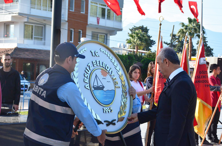 Arsuz halkının da yoğun ilgi gösterdiği program, Arsuz Kent Meydanı’nda çelenk sunumu ile başladı. Saat 09.05’te 2 dakikalık saygı duruşu ve istiklal marşı ile devam etti. Ulu Önderi saygı ve minnetle andıklarını belirten Başkan Culha; “Cumhuriyetimizin kurucusu Gazi Mustafa Kemal Atatürk’ün izinden giderken, bağımsızlığımızdan ve duruşumuzdan ödün vermeden Cumhuriyet ve Demokrasi için var gücümüzle çalışacağımızın bilinmesini isteriz.