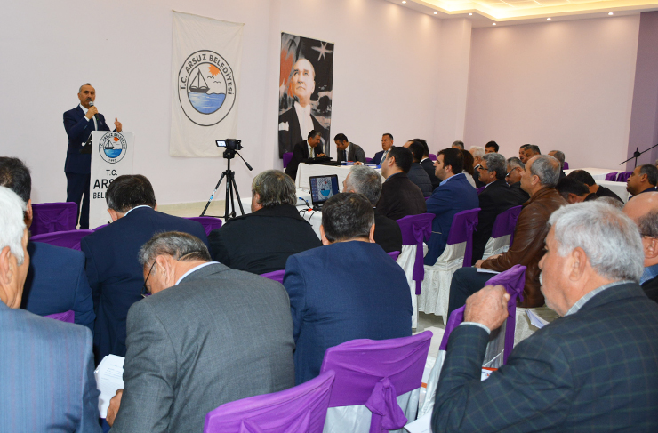 Son olarak söz alan, Arsuz Belediye Başkanı Nazım Culha ise, şeffaf ve hesap verebilir belediyecilik anlayışıyla 34 mahallenin tamamına en iyi hizmeti ulaştırmak için muhtarlarla koordineli bir biçimde çalıştıklarına ve sürekli istişare halinde olduklarına vurgu yaparak; “Yerel yönetimlerde muhtarlarımızı paydaşlarımız olarak değerlendiriyoruz. Hepimizin ortak amacı; bu kente hizmet sunmak ve sıkıntılarını çözmektir. Karşılıklı dayanışma ve anlayış içerisinde görevimizi sürdürmeye çalışıyoruz. Bu ilçenin gelişmesi sadece belediye hizmetiyle olmuyor. Burada ilçe belediyesi, büyükşehir belediyesi ve devlet yatırımları var. Özellikle yeni ilçe olmaktan kaynaklı yeni oluşan birimler ve kurumlar nedeniyle devlet yatırımlarına ihtiyacımız var. Bizler kendi görevimizin yanı sıra, büyükşehir ile alakalı yapılacak işlerin koordinasyonun yapılmasını sağlamak, hem de devlet yatırımları ile ilgili koordinasyonu sağlamak üzere çalışma içerisindeyiz. Hükümet ve devlet nezdindeki yatırımların yapılması konuşunda aşındırmadığımız kapı kalmadı. İçişleri Bakanlığı, Turizm Bakanlığı, Çevre ve Şehircilik Bakanlığı, Enerji Bakanlığı ve en sonda da Tarım Bakanlığı’nda kentteki sıkıntıların çözümüne yönelik çalışmalar yaptık ve büyük bölümünde de karşılık gördük. İlçemizde belediye hizmetini aşan, mülkiyet sorunu gibi bazı konular da çok ön plana çıkmaktadır. Ecremisil ile ilgili ciddi sıkıntılar yaşanıyor ve yaşanmaya devam etmektedir. Bu sorunun çözümü içinde görüşmelerimiz ilgili birimlerle devam etmektedir” dedi.