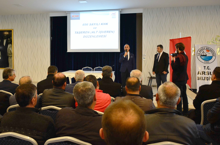 Arsuz Belediyesi ve Çukurova Belediyeler Birliği işbirliği ile belediye personeline yönelik “696 Sayılı KHK ve Taşeron Düzenlemesi” konulu eğitim semineri düzenlendi.