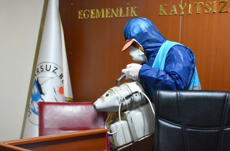 Son günlerde bir çok ülkede baş gösteren virüs tehdidine karşılık Arsuz’da da kurumlar ve halkın sağlığını korumaya yönelik tedbirler kapsamında Hükümet Konağı da baştan aşağı bütün alanları ile dezenfekte edildi. İlçe Belediyesi ve İlçe Tarım ve Orman Müdürlüğü işbirliği ile binanın tamamı dezenfekte edilirken Kaymakam Musa Sarı gerek binanın dezenfekte edilmesi, gerek kamu personelinin çalışma ilkeleri anlamında kurumlara gelen halkın ve kamu çalışanlarının sağlığını tehdit edecek o soruları en az da indirgeme adına tüm kurumlarca gerekli tedbirlerin alınmaya çalışıldığını ifade ederek emeği geçenlere teşekkürlerini sundu. (Haber Merkezi)