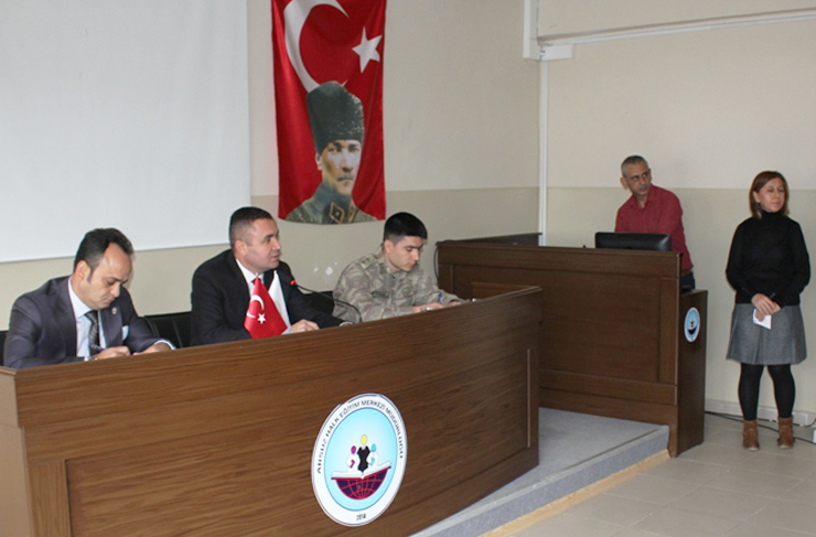 Arsuz İlçe Milli Eğitim Müdürlüğü Halk Eğitim Toplantı Salonunda yapılan toplantı saygı duruşu ve istiklal marşının okunmasıyla başladı. Toplantıda daha sonra Arsuz Kaymakamı Musa Sarı bir konuşma yaptı.