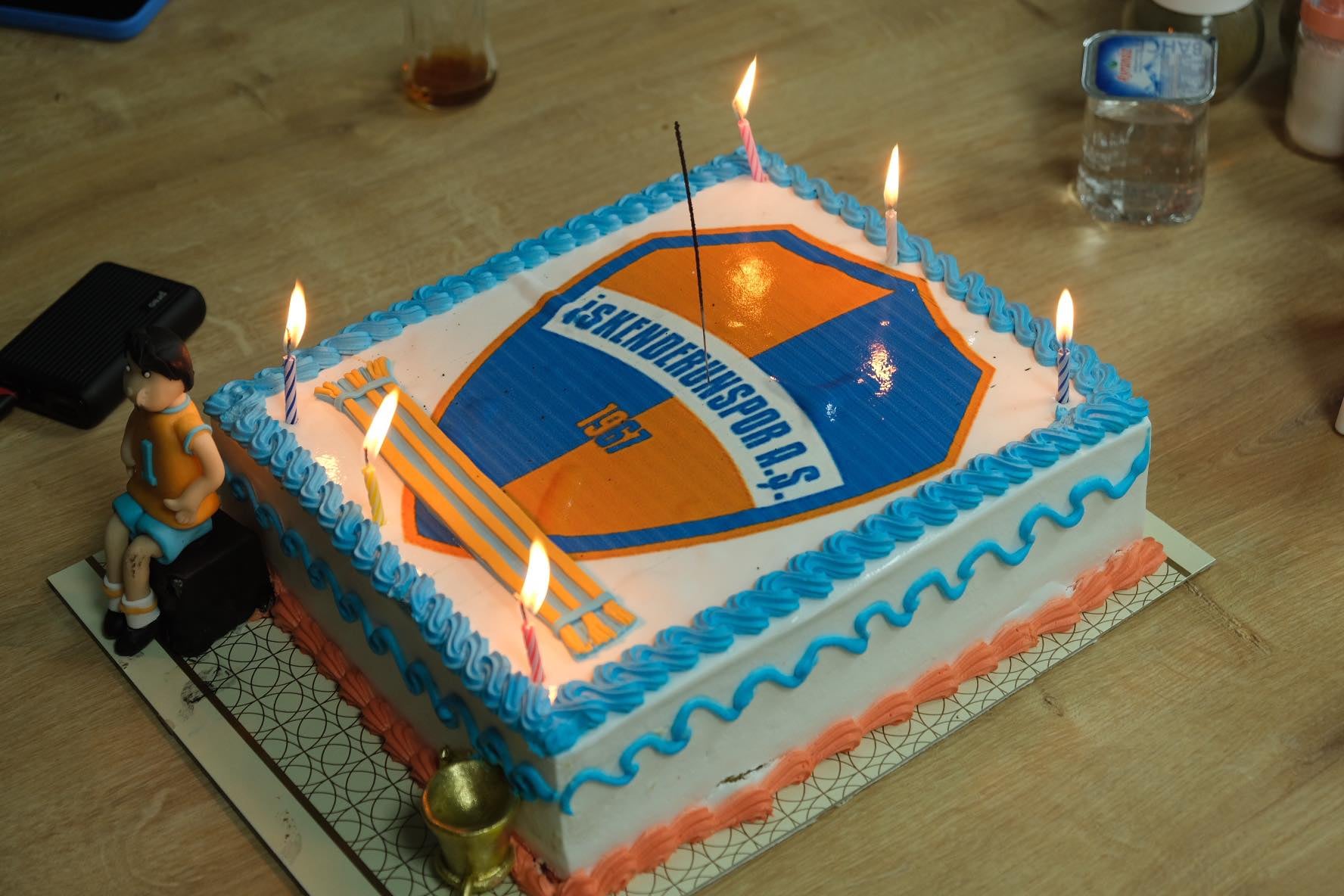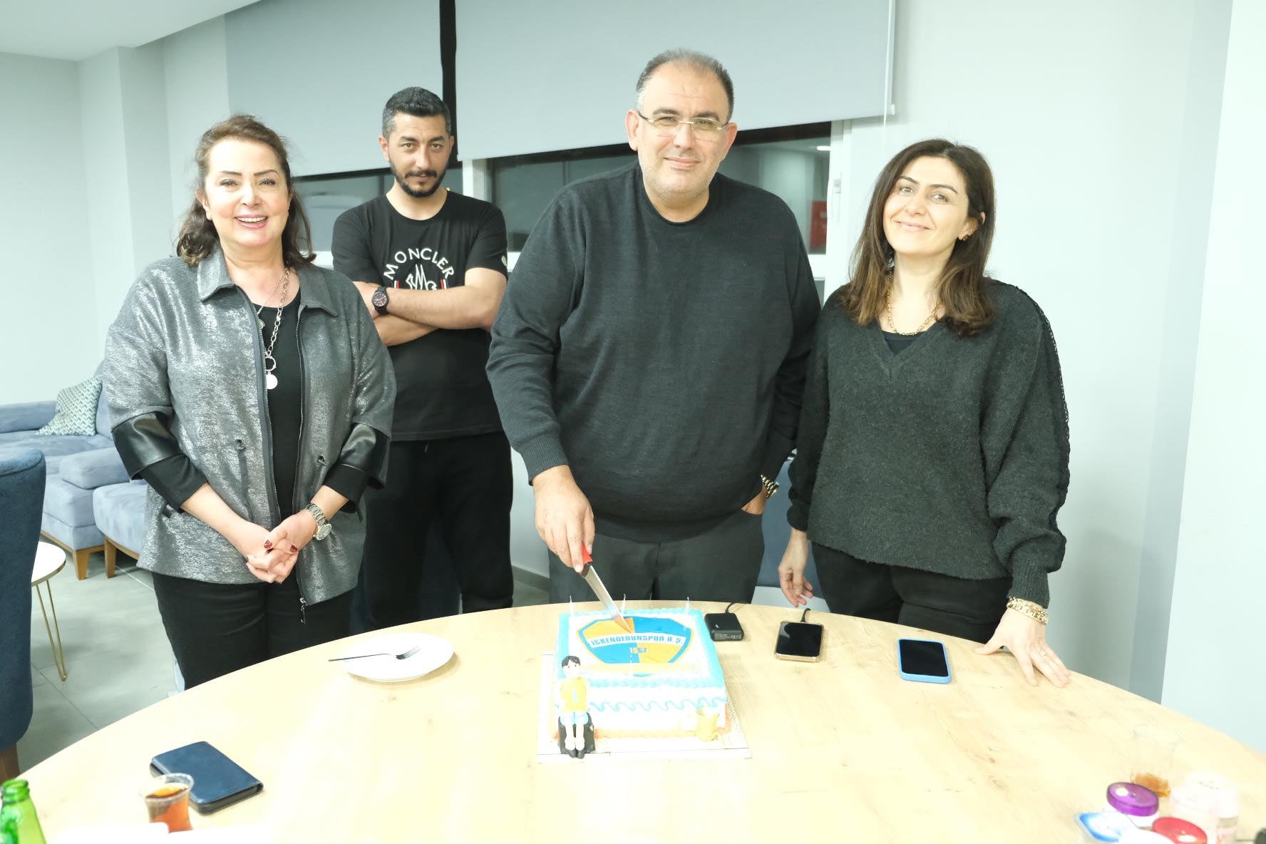 TFF 3. Lig 2. Grupta zirve mücadelesi veren Turuncu-Mavili ekip İskenderunspor A.Ş. Asbaşkanı Gülcan Polat, Kulüp Başkanı Hakan Bolat’a doğum günü sürprizi organize etti. İskenderunspor Başkan Vekili Melike Özdemir Bolat’ın da hazır bulunduğu sürpriz doğum gününde, Başkan Bolat, üzerinde İskenderunspor’un logosunun da bulunduğu Turuncu-Mavi renklerle süslenmiş yaş pastayı kesti. Asbaşkan Gülcan Polat ile Başkan Vekili Melike Özdemir Bolat, Başkan Hakan Bolat’a çiçek ikramında bulunarak doğum gününü kutladılar. İskenderunspor tesislerinde yapılan doğum günü kutlamasına teknik heyet ve futbolcular da katıldı. (Haber Merkezi)