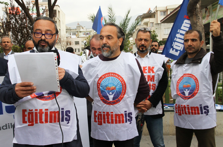 CHP İskenderun İlçe Başkanı Yusuf Mansuroğlu ve yönetimi, TKP İskenderun İlçe Başkanı Vasil Koçkazı ve yönetimi ile bazı sivil toplum kuruluşu temsilcilerinin de destek verdiği açıklamayı Eğitim İş Hatay 2 Nolu Şube Başkanı Hüseyin Ateş yaptı.