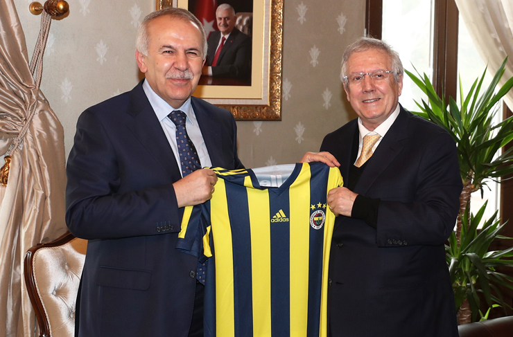 Buradaki ziyaretin sonunda Başkan Aziz Yıldırım, Vali Erdal Ata’ya Fenerbahçe forması hediye etti. Vali Erdal Ata da Yıldırım’a Hatay’ı simgeleyen bir tabak hediye etti.