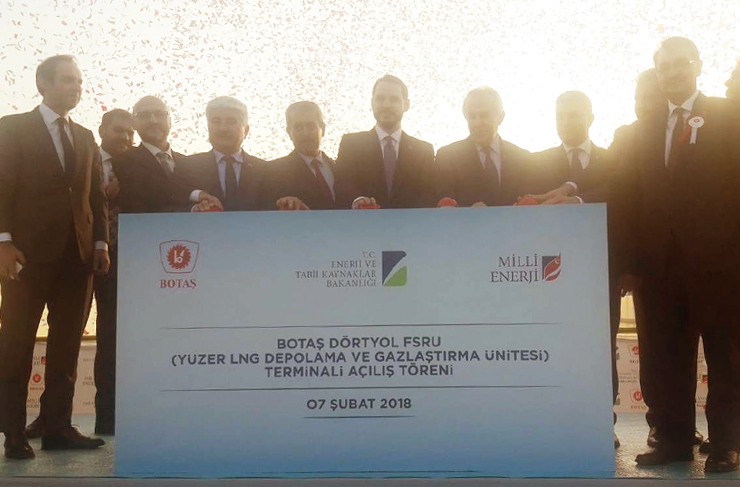 Enerji ve Tabii Kaynaklar Bakanı Berat Albayrak ilimizde gerçekleştirdiği taziye ziyaretlerinden sonra beraberindekilerle birlikte Dörtyol BOTAŞ FSRU (depolama ve yeniden gazlaştırma terminali) Projesi (Yüzer LNG Terminali/Floating Storage and Regasification) tesisini hizmete aldı. Hizmete alım töreni saygı duruşu ve İstiklal Marşının okunmasının ardından başladı.