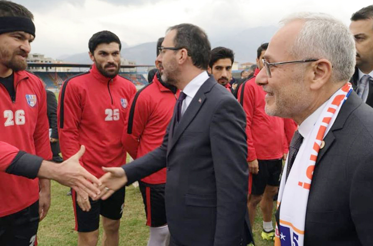 Bakan Kasapoğlu daha sonra Hatay Valisi Rahmi Doğan, İskenderun Kaymakamı İskenderun Yönden, Ak Parti Hatay Milletvekilleri Abdulkadir Özel ile Sabahat Özgürsoy Çelik, Tosyalı Holding Yönetim Kurulu Başkanı ve Varlık Fonu Üyesi Fuat Tosyalı, İskenderun Belediye Başkanı Fatih Tosyalı, Belen Belediye Başkanı İbrahim Gül, Spor Toto Teşkilat Başkanı Bünyamin Bozgeyik, Gençlik ve Spor İl Müdürü Cemil Şensöz, beraberindekiler ve Turuncu-Mavili takım ile hatıra fotoğrafı çektirdi. (Haber: İlyas Edip TERBİYELİ)