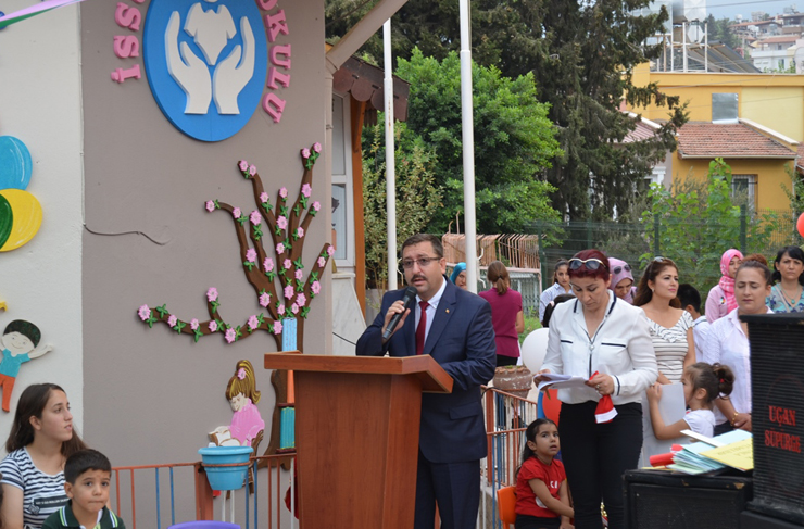 İlçe Milli Eğitim Müdürü Bekir Şahan günün anlam ve önemini içeren konuşmasında; “Sevgili Öğrenciler; Evinizden sonra değerli vakitlerinizi ayıracağınız yuvanız açıldı. Yuvanızda siz istemeseniz de saatler, günler, yıllar çabucak gelip geçecektir. Önemli olan saatleri, günleri ve yılları lehinize işletebilmektir. “Hedefim güneş, ıskalarsam yıldızlardayım” diyebilmelisiniz. Geleceğin özgür ve kalkınmış Türkiye’sini yaratacak olan sizlerin okul öncesinden başlayarak tüm eğitim sürecinizde başarıdan başarıya koşan bireyler olarak yetişmeniz en büyük arzumuzdur.