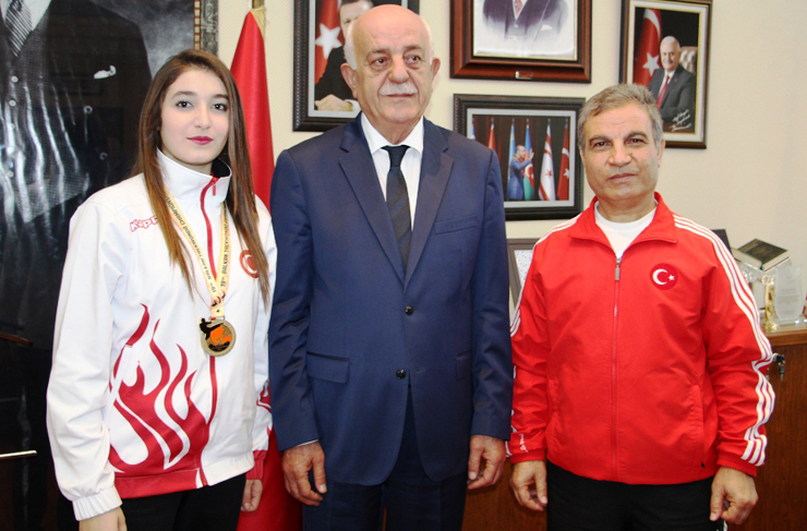 Balkan Şampiyonu Ayşe Demirsavcı, Antrenörü Mehmet Korhan ile birlikte İskenderun Belediye Başkanı Seyfi Dingil’i de makamında ziyaret etti.