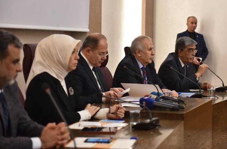 Toplantıda açılış konuşmasını yapan Hatay Valisi Sayın Erdal Ata, Kırıkhan Kaletepe Mahallesinde yaşanan terör saldırısında hayatını kaybeden vatandaşımıza Allah’tan rahmet, yakınlarına sabır ve başsağlığı dileklerini ileterek sözlerine başladı. Türk Silahlı Kuvvetlerimizin yürüttüğü “Zeytin Dalı” harekâtını başarıyla tamamlanacağına olan inancını ifade eden Vali Ata; “Reyhanlı ilçemizde 1 kişi hayatını kaybederken 46 kişi yaralandı. Onlara da acil şifalar diliyorum. Hepinizin bildiği gibi bir ateşten bir çemberin içinde yaşıyoruz. Türkiye üzerinde birtakım oyunlar oynanmak isteniyor ama bizim de millet olarak bu ülke üzerinde oynanmak istenen oyunları bozacak gücümüz ve kararlılığımız var. Biraz önce Kırıkhan’a şehidimizin ailesine başsağlığı dileklerimizi iletmek için uğradık. Orada gördüğümüz tablo gerçekten gurur verici. Aile, evladını kaybetmiş olmasına rağmen yedi evladım var birini şehit verdim diğerlerini de vermeye hazırım diyor. Bu da gösteriyor ki milletimizin vatanı için ve devletinin bekası için yapamayacağı hiçbir fedakârlık yoktur.