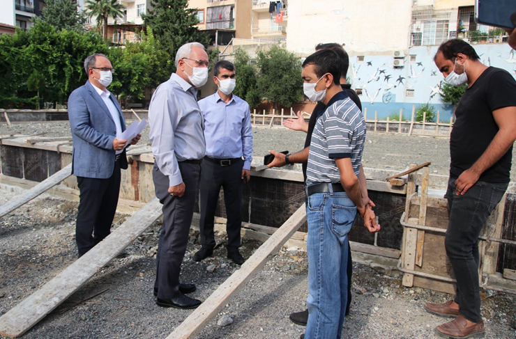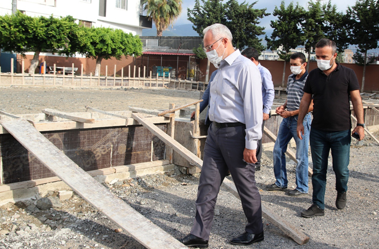 İskenderun Belediye Başkanı Fatih Tosyalı, Çay Mahallesi İnönü Ortaokulu içerisinde yapımına başlanan spor tesisini yerinde inceledi.