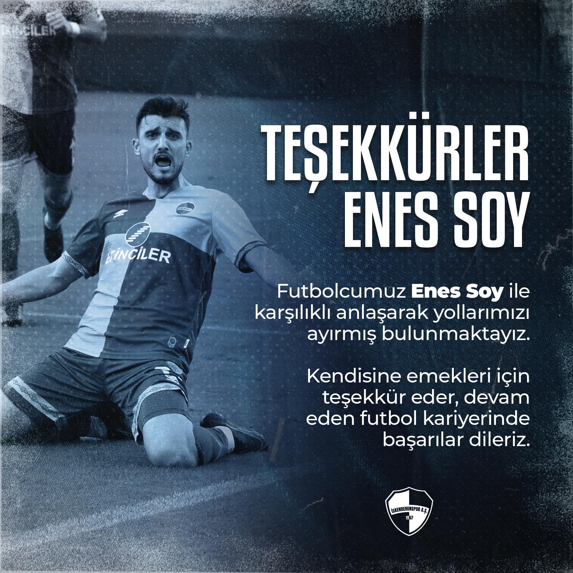 Ara Transfer Dönemine girilirken Turuncu-Mavili ekip başarılı oyuncu, golcü futbolcu Enes Soy ve Süleyman Güneş ile karşılıklı anlaşarak yolları ayırdı. Konuyla ilgili kulüpten yapılan açıklamada; “Futbolcumuz Enes Soy ve Süleyman Güneş ile karşılıklı anlaşarak yollarımızı ayırmış bulunmaktayız. Kendilerine emekleri için teşekkür eder, devam eden futbol kariyerlerinde başarılar dileriz” ifadelerine yer verildi.