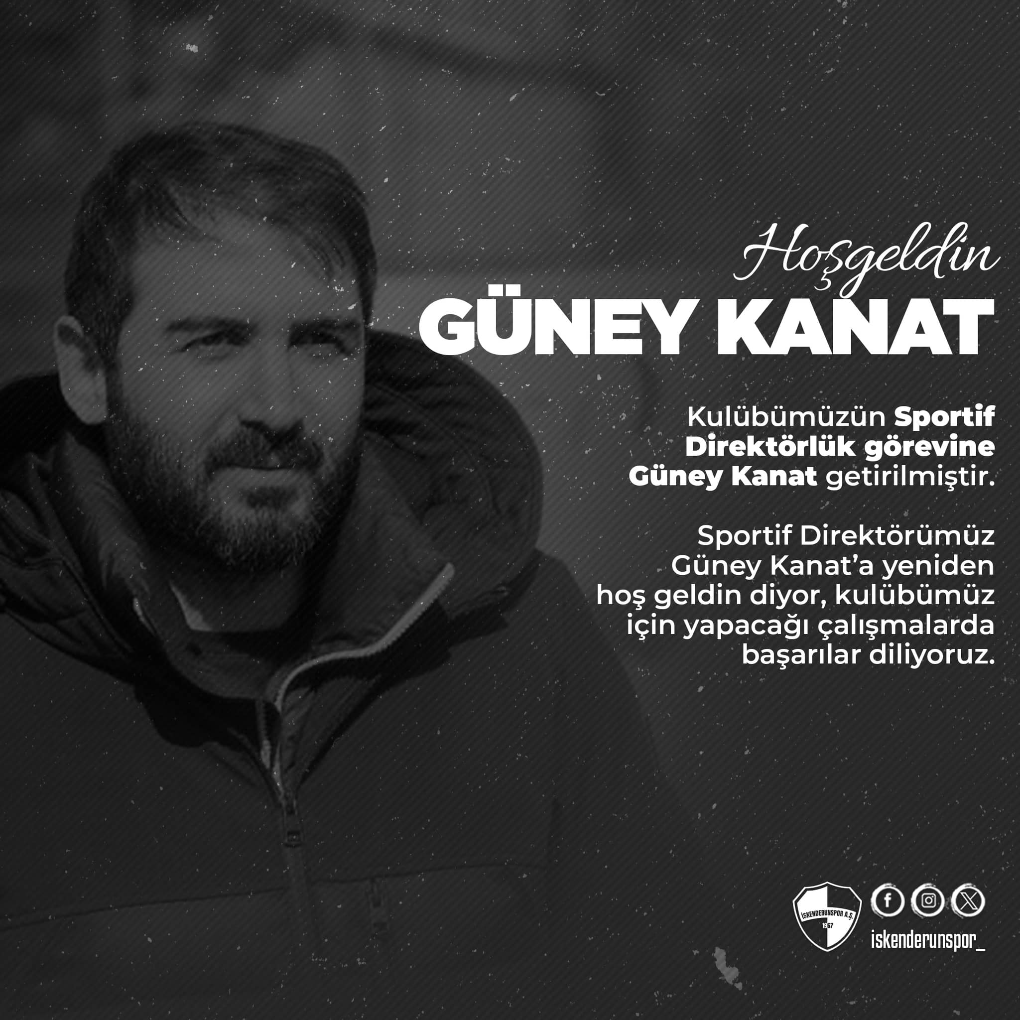 TFF 2. Lig Kırmızı Grupta zirve mücadelesi veren ekipler arasında yer alan temsilcimiz İskenderunspor, başarılı skorlar almaya devam ederken, kulüp yönetimi de transfer çalışmalarına hız verdi. Kulüp Başkanı Hakan Bolat, Turuncu-Mavili camiaya sevindirici transfer haberlerinin müjdesini verirken, Sportif Direktörlüğe Güney Kanat’ın getirildiğini resmi olarak açıkladı.