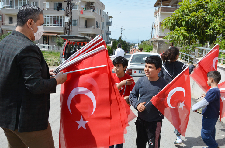 Türkiye Büyük Millet Meclisi’nin açılışının 100. yılı münasebetiyle, 23 Nisan Ulusal Egemenlik ve Çocuk Bayramı etkinlikleri kapsamında, Belen Belediye Başkanı İbrahim Gül, değişik bir etkinliğe imza attı. Başkan Gül, Coronavirüs nedeniyle uygulanan sokağa çıkma yasağı ve bayram kutlamalarının iptali nedeniyle, Belen ilçesinin farklı mahallelerinde çocuklara, esnaflara ve ilçe halkına Türk Bayrağı takdim ederek, çocuklara çeşitli yiyecek ikramında bulundu.