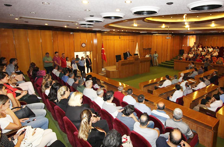 Meclis salonunda belediye personeli ile bayramlaşan Başkan Seyfi Dingil, personelin Ramazan bayramını kutladı ve bütün personelle tek tek bayramlaştı.