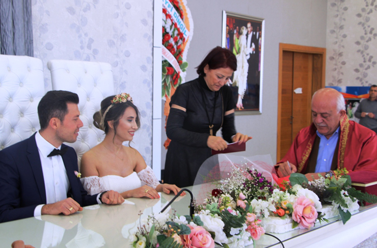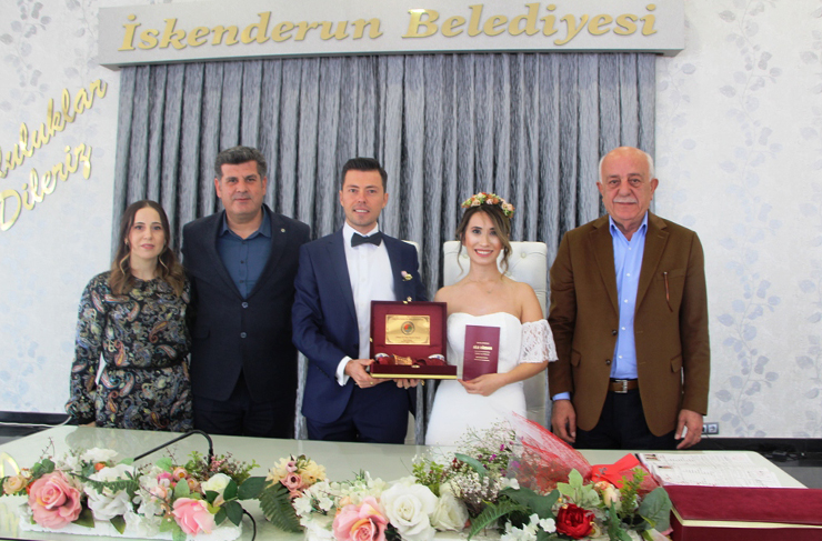 Genç çiftlerin mutluluklarına ortak olmak isteyen İskenderun Belediye Başkanı Seyfi Dingil, genç çiftlerin nikâhlarını kıyarak evlenme cüzdanına imza attı.