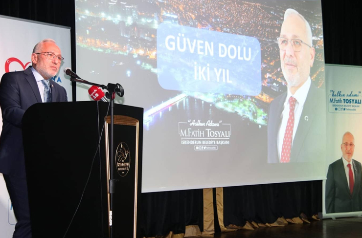 Göreve başladıkları ilk günden bu güne kadar İskenderun halkına en iyi hizmeti götürme noktasında gece-gündüz demeden çalıştıklarını belirten Başkan Fatih Tosyalı; “Belediye yönetiminde 2. yılımızı tamamlamış bulunmaktayız. Kentimizin sorunlarını, ihtiyaçlarını belirlerken muhtarlarımızın, odalarımızın, siyasi partilerimizin, sivil toplum kuruluşlarımızın görüş, öneri ve düşüncelerini dinledik. Kamu kurum ve kuruluşlarımızla sürekli iletişim halinde olduk” dedi.