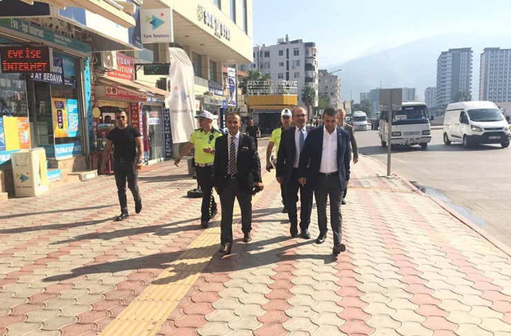 İskenderun Belediye Başkanı Fatih Tosyalı, İskenderun Belediye Başkan Yardımcıları Kemal Nadir Ünal ve Ahmet Keskin ile İlçe Emniyet Müdürü Nevzat Güneş, Battı-Çıktı çevresi, Pac Meydanı ve merkez postane civarında yaşanan trafik yoğunluğunu çözme adına yapılması planlanan çalışmaları yerinde incelediler.