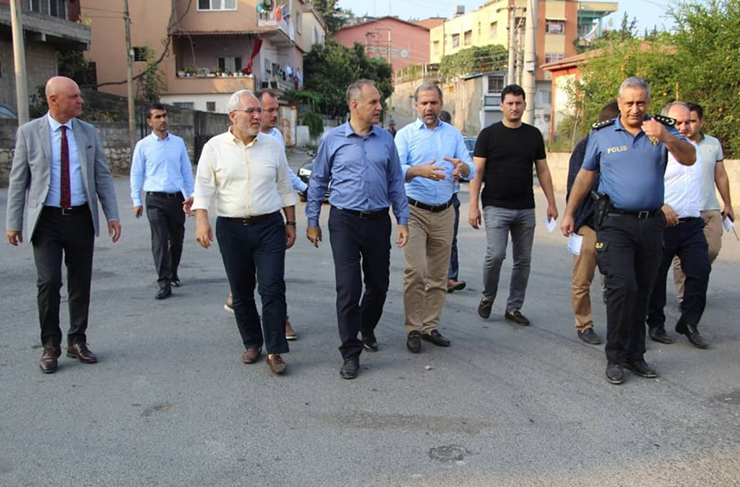 İskenderun Belediye Başkanı Fatih Tosyalı, İskenderun Kaymakamı İskender Yönden, AK Parti Hatay Milletvekili Abdulkadir Özel, AK Parti İlçe Başkanı Abdülkerim Güven ve Belediye başkan yardımcıları ile birlikte Kocatepe Mahallesinde incelemelerde bulundular.