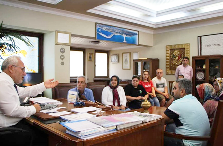 Vatandaşların sorun, istek ve takdirlerini bizzat dinleyen Başkan Tosyalı, çözüm noktasında notlar alıyor ve gereken birimlere talimatlarını veriyor.