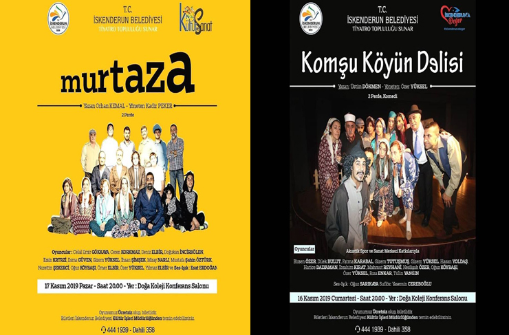Belediyenin Kültür ve Sanat Etkinlikleri kapsamında 17 Kasım 2019 Pazar günü saat 20.00’da ise Doğa Koleji Konferans salonunda Belediyenin Tiyatro topluluğu tarafından “Murtaza” isimli tiyatro gösterisinin sahneleneceğini duyuran Başkan Tosyalı; “Tüm bu tiyatro gösterilerine tüm bölge halkını davet ediyoruz. Sanatsal anlamda çalışmalarımız devam edecek” şeklinde konuştu. (Haber: Doğan SÜSLÜ)