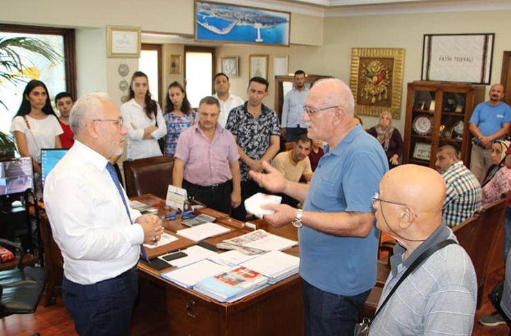 İskenderun Belediye Başkanı Fatih Tosyalı, başkanlık makamında vatandaşlarla tek tek görüşerek iletilen sorunları, önerileri ve istekleri bizzat dinleyerek çözüm bulmaya çalışıyor.
