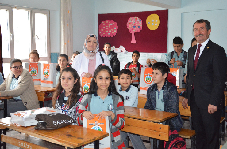 İlçe genelindeki 12 Ortaokul’da eğitim gören ve Liselere Giriş Sınavına girecek olan, toplamda 423 8. sınıf öğrencisine, içerisinde 10 kitaptan oluşan test kitaplarını dağıtan Başkan Vurucu öğrencilere hitaben yaptığı konuşmada şu ifadelere yer verdi. Başkan Vurucu; “Sınava az bir süre kala sizlere bir nebze de olsa yardımcı olmak anlamında soru kitaplarından oluşan setleri hediye etmek istiyorum. Zaman kısa kitaplarımız kalın, bugünden tezi yok kitaplarımızdaki soruları çözerek, hem test çözme alışkanlığınızı hızlandıracak, hem de eksik olarak gördüğünüz konuların testlerini çözerek sınavda başarılı olma yolunda bir adım daha atmış olacaksınız.