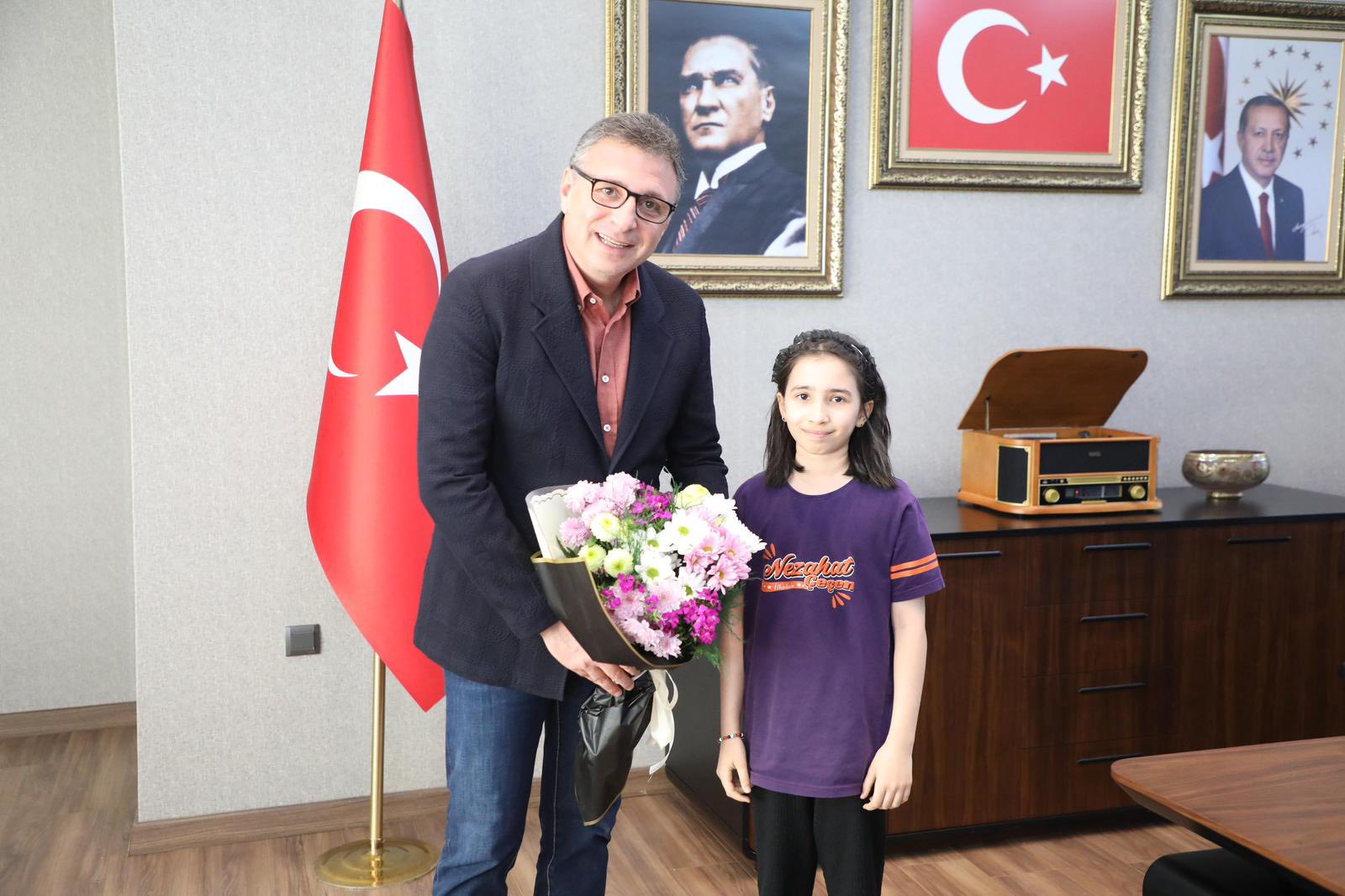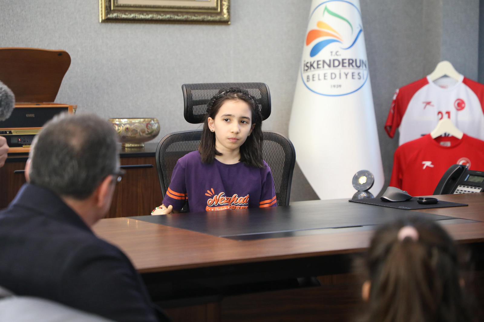 İskenderun Belediye Başkanı Mehmet Dönmez, Gazi Mustafa Kemal Atatürk’ün çocuklara armağan ettiği bu anlamlı gün dolayısıyla başkanlık koltuğunu Nezahat Çeçen İlkokulu öğrencisi Asel İnan’a devretti.