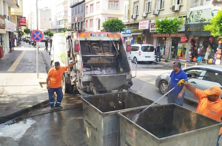 Başkan Fatih Tosyalı; “Temizlik İşleri Müdürlüğü ekiplerimiz, özellikle Kurban Bayramı sonrası çöp konteynerlerinin yıkama ve dezenfekte çalışmalarına sıklıkla devam ediyor.