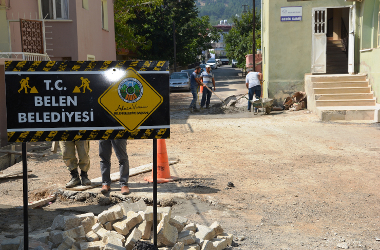 Yine Fen İşleri Müdürlüğüne bağlı ekiplerce yapılan çalışmalar kapsamında Halilbey Mahallesinde bulunan Gedik Camii önünde bulunan yolda, yağmur sularının tahliyesi adına kaldırım yapım çalışmalarını da hızlı bir şekilde bitiren Belen Belediyesi, burada yaşayan mahalle sakinlerinin hava koşulları sebebiyle yağmur yağdığında yaşadıkları taşkın sıkıntıları da gidermek adına şimdi de yağmur suyu drenaj kanal çalışmalarını başlattı.