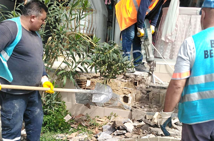 Belen Belediyesi Zabıta ekiplerinin yaptığı denetimler sırasında Sarımazı Mahallesi Cırtıman yolu üzerinde vatandaşlarımız tarafından kullanılan yaya kaldırımlarının esnaflarımız tarafından işgallerinin tespitinin ardından, Fen İşleri Müdürlüğüne bağlı ekiplerce yıkım çalışmasına ivedilikle başlayarak, çalışmalar tamamlandı.