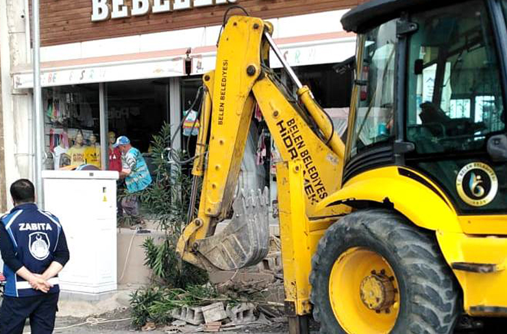 Belen Belediyesi Zabıta ekiplerinin yaptığı denetimler sırasında Sarımazı Mahallesi Cırtıman yolu üzerinde vatandaşlarımız tarafından kullanılan yaya kaldırımlarının esnaflarımız tarafından işgallerinin tespitinin ardından, Fen İşleri Müdürlüğüne bağlı ekiplerce yıkım çalışmasına ivedilikle başlayarak, çalışmalar tamamlandı.
