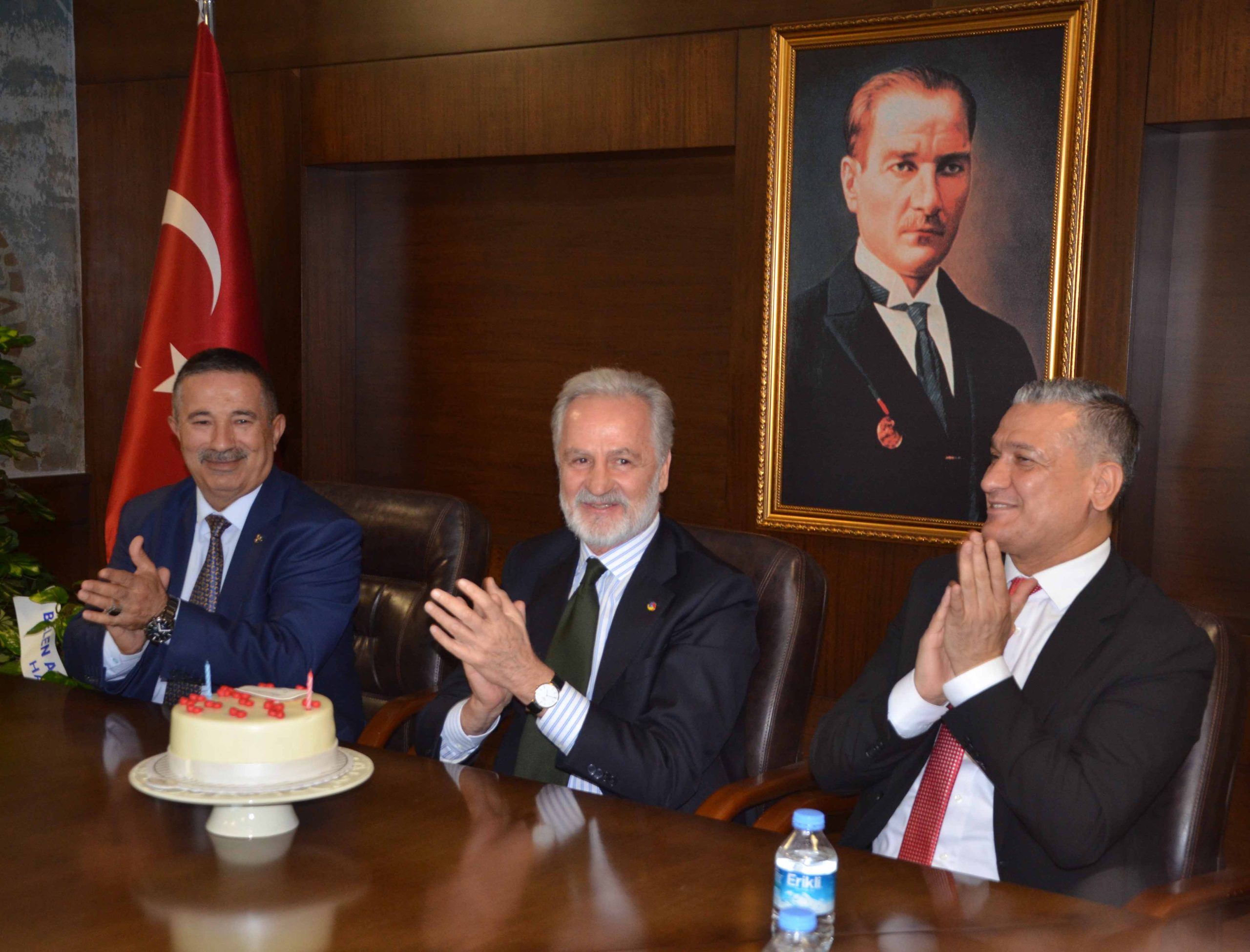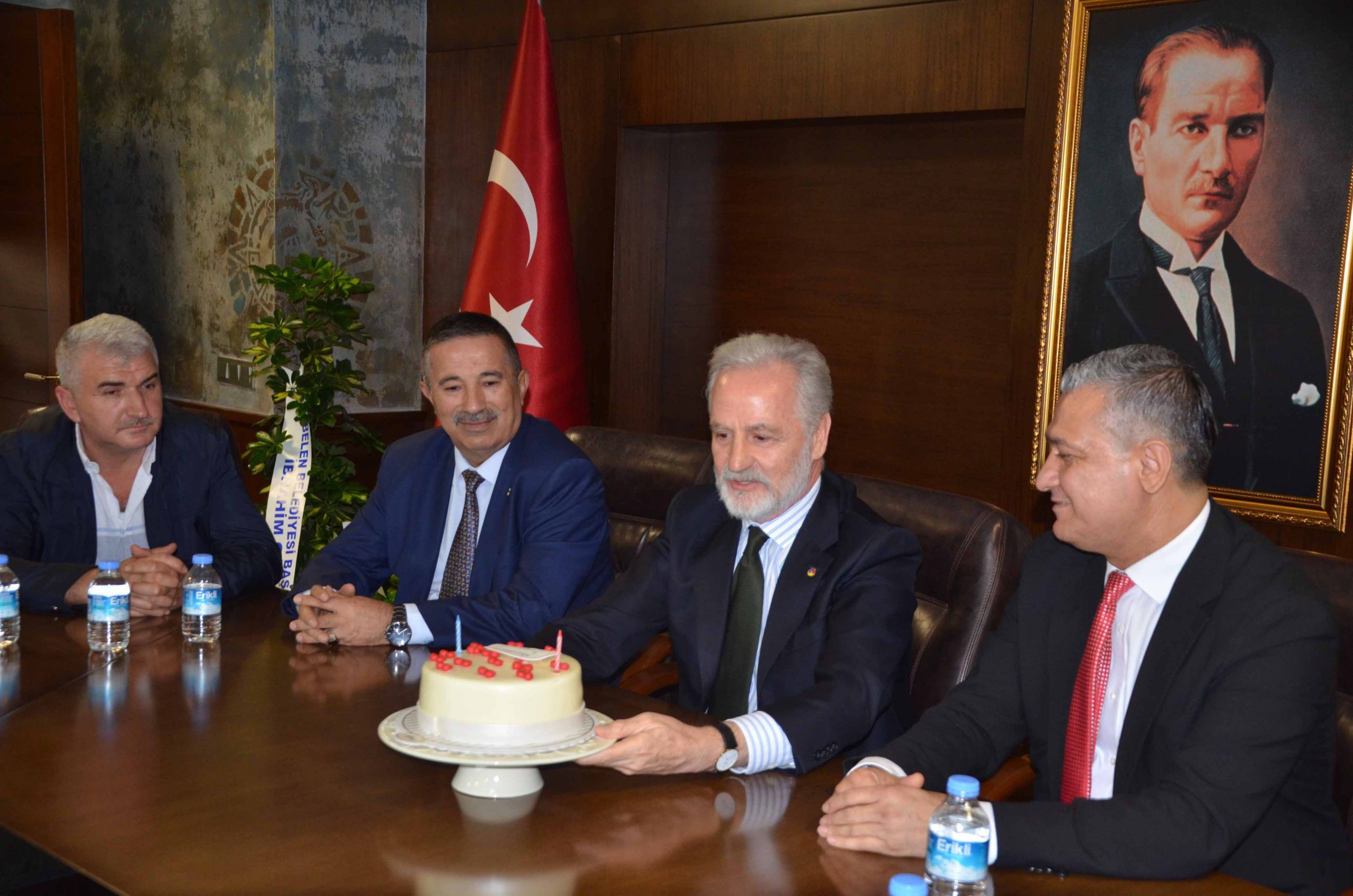 Ziyarette, Belen Belediye Başkanı İbrahim Gül, İTSO Başkanı Levent Hakkı Yılmaz’ın doğum günü olması nedeni ile sürpriz yaparak pasta ikramında bulundu. İTSO Başkanı Yılmaz ise, Belen Belediye Başkanı İbrahim Gül’e bu ince ve nazik düşüncesinden dolayı teşekkür etti.