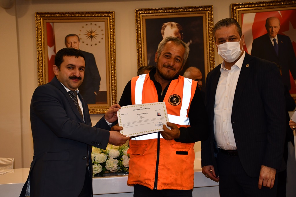 Belen Kaymakamı Mahmut Sami Yılmaz, 6 Şubat 2023 tarihinde meydana gelen depremin ilk saatinden itibaren yaraları sarmaya gayret gösteren Belediye Personellerini başarı belgesi ile ödüllendirdi.