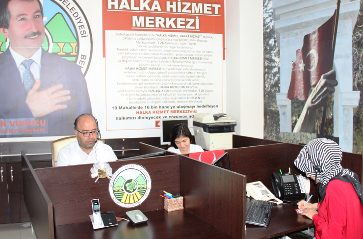 Belen Belediyesi her zaman üstüne basarak dile getirdiği yenilikçi ve sosyal belediyecilik ilkesini her daim yaşatmaya devam ederken, sunduğu hizmet kalitesiyle diğer ilçe belediyelerine de örnek olma yolunda hızlı adımlarla ilerliyor. Belediye binasında hizmet vermekte olan “Halka Hizmet Merkezi” vatandaşların istek ve taleplerine, en doğru ve sağlıklı bir şekilde dönüş yapıp, gereken en kısa sürede en hızlı hizmeti sunuyor.