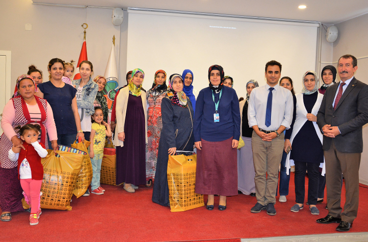 Konferansın akabinde Belen Belediye Başkanı Adnan Vurucu, konferansa katılan tüm annelere ‘Hoş Geldin Bebek’ hediyelerini sundu.