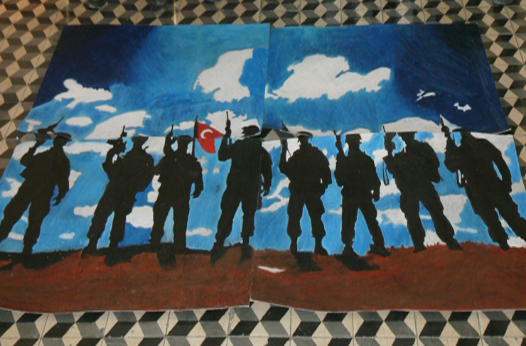 Öğrenciler Şevval Bakır, Merve Aşer, Hatice Beyza Kısa ve Yunus Emre İldağ da konuyla ilgili olarak; “Öğrenciler olarak bu resimleri çok yoğun duygular içinde çalıştık. Her resmi 4-5 kişilik gruplar halinde çizerek. Türk Askerinin gücünü göstermeye gayret ettik. Askerimiz orada görev yaparken biz de küçük de olsa manevi destek vermek istedik” şeklinde konuştular.