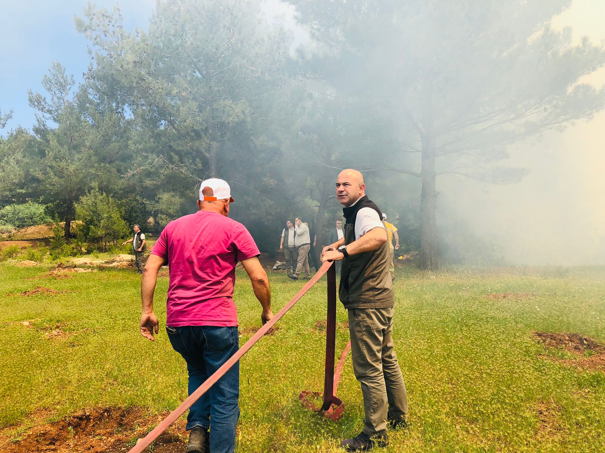 Belen Belediye Başkanı İbrahim Gül de yangın söndürme çalışmalarına katkı sundu. Geçtiğimiz yıl büyük zarar gören Belen ormanlarında bu yıl zararın en hafif şekilde atlatılması için çalışmalara katkı sunan Gül, kimsenin zarar görmemesi için de tedbirler alındığını kaydetti.