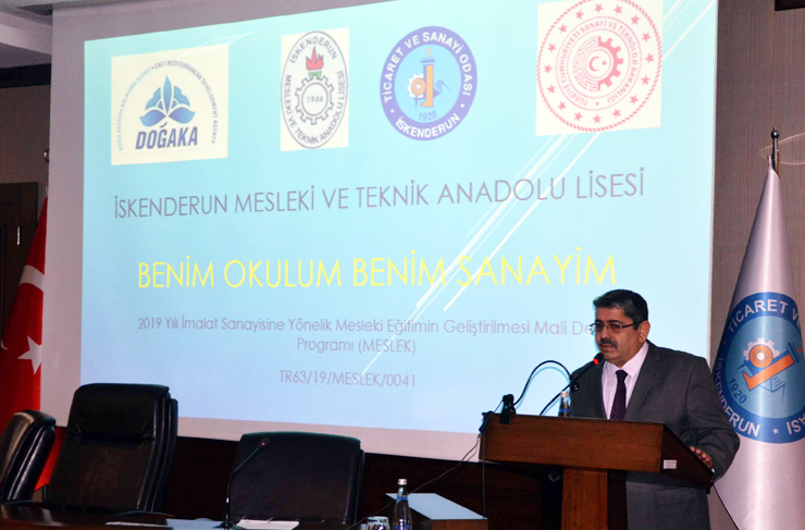 DOĞAKA 2019 Yılı İmalat Sanayisine Yönelik Mesleki Eğitimin Geliştirilmesi Mali Destek Programı kapsamında ‘Benim Okulum Benim Sanayim” projesi açılış toplantısı İskenderun Ticaret ve Sanayi Odası’nda gerçekleştirildi.