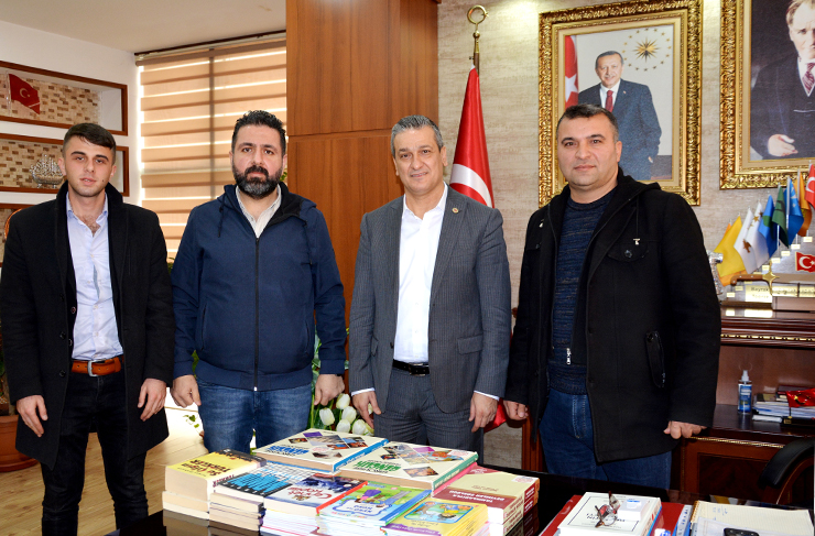 Belen Ülkü Ocakları Başkanı Güven Şener ve Bilge Kırtasiye ortaklarında Ramazan Kaya, Belediye Başkanı İbrahim Gül’ü makamında ziyaret ederek, 500’e yakın kitabı Belen Millet Kütüphanesi için başlattığı “Bir Işıkta Siz Olun” adlı kitap bağış kampanyasına, destek amaçlı teslim etti.