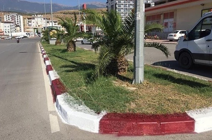 İskenderun’un Modern Evler civarında kaldırım taşlarının Hatayspor’un renkleri olan Bordo-Beyaz’a boyanması vatandaşlardan tepki gösterdi.
