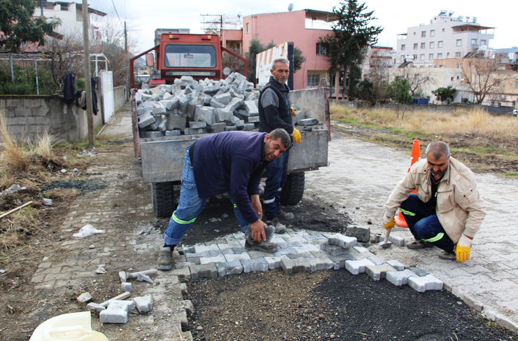 İskenderun Belediyesi Fen İşleri Müdürlüğü tarafından yapılan çalışmalar ilçe genelinde, aralıksız devam ediyor. Ekipler kilitli parke taşı ile kaplanmış sokakların çeşitli nedenlerle bozulan ve deforme olan kısımlarını tamir ederek daha düzgün bir hale getiriyor.