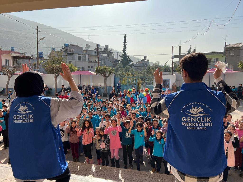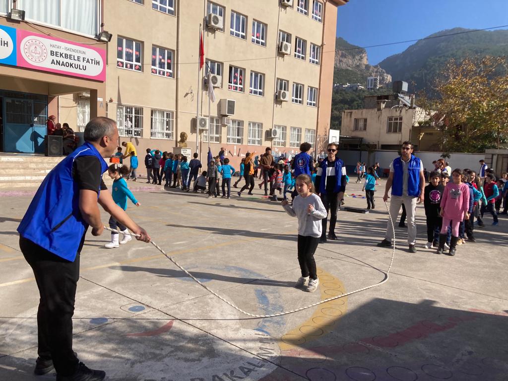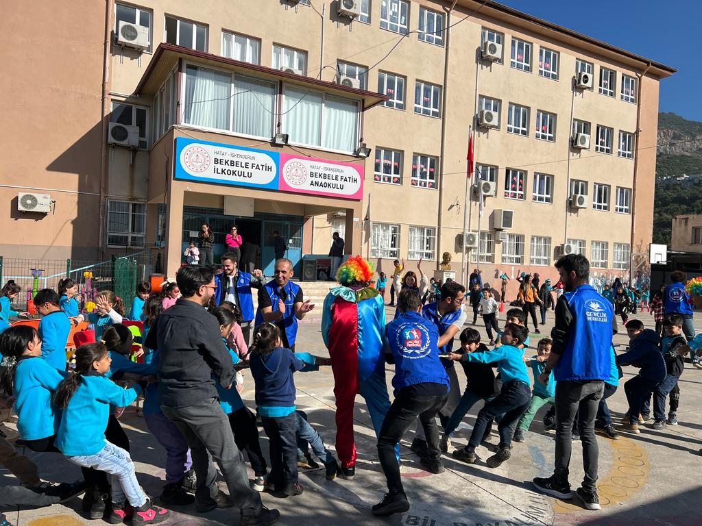 Depremin izlerini şehrimizden silmek için daha özverili bir şekilde çalışan İskenderun Gençlik Merkezi, çocukların moral ve motivasyonunu arttırmak için Bekbele Fatih İlkokulunda coşkulu bir şenlik gerçekleştirdi. Halat çekme, ip atlama, yüz boyama, sandalye kapmaca, dart oyunu, futbol parkuru, eğitici oyunlar gibi istasyonların yanı sıra danslı oyunlar ve halay ile öğrenciler birbirinden renkli anlar yaşadı. Şenlikte tüm İskenderun Gençlik Merkezi personelleri ve gönüllü gençleri, öğrencilerle gönülden bağ kurarak, onlara unutulmaz ve eğlenceli bir gün yaşattı ve yine tüm gönülleri fethetmeyi başardı.