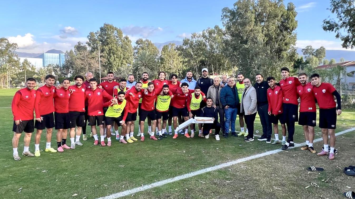 2.Ligdeki Turuncu-Mavili temsilcimiz İskenderunspor, deplasmandan 3 puanla dönerek camiayı sevince boğdu. Play-Off yolunda büyük bir adıma atan temsilcimizde alınan galibiyet; antrenmanda tatlı ile kutlandı. Kulübün Yönetim Kurulu Üyeleri Esat Gümüşbaş, Mustafa Ergüven, Orhan Özen ve Samet Parmaksız takımın dünkü antrenmanını ziyaret ederek, futbolculara ve teknik kadroya tatlı ikramında bulundular. Yöneticiler ayrıca bugün oynanacak olan Adana 01 FK maçı için başarı temennisinde de bulundular.