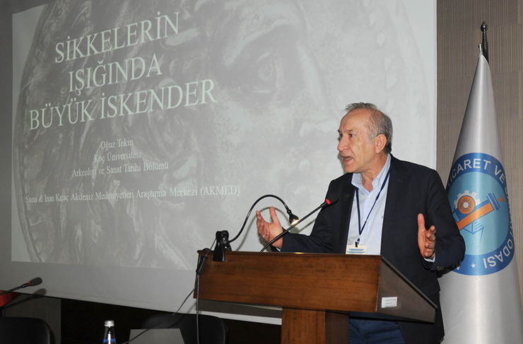 Büyük İskender döneminde basılan sikkeler ile ilgili bilgiler veren Koç Üniversitesi’nden Prof. Dr. Oğuz Tekin ise İskender’in büyük bir kişilik olduğuna dikkat çekerek hem batı, hem doğu dünyasında kabul görmüş bir şahsiyet olduğunu söyledi.