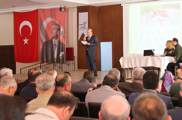 Hatay Büyükşehir Belediyesi ve Doğu Akdeniz Kalkınma Ajansı (DOĞAKA)’nın ortaklaşa düzenlediği ‘Haşere Vektör Mücadelesinde Yapılanlar ve Bu Alanda Gelecekte Yapılması Planlanan Çalışmalar’ konulu eğitim ve bilgilendirme toplantısı Perşembe günü HATMEK’te gerçekleştirildi.